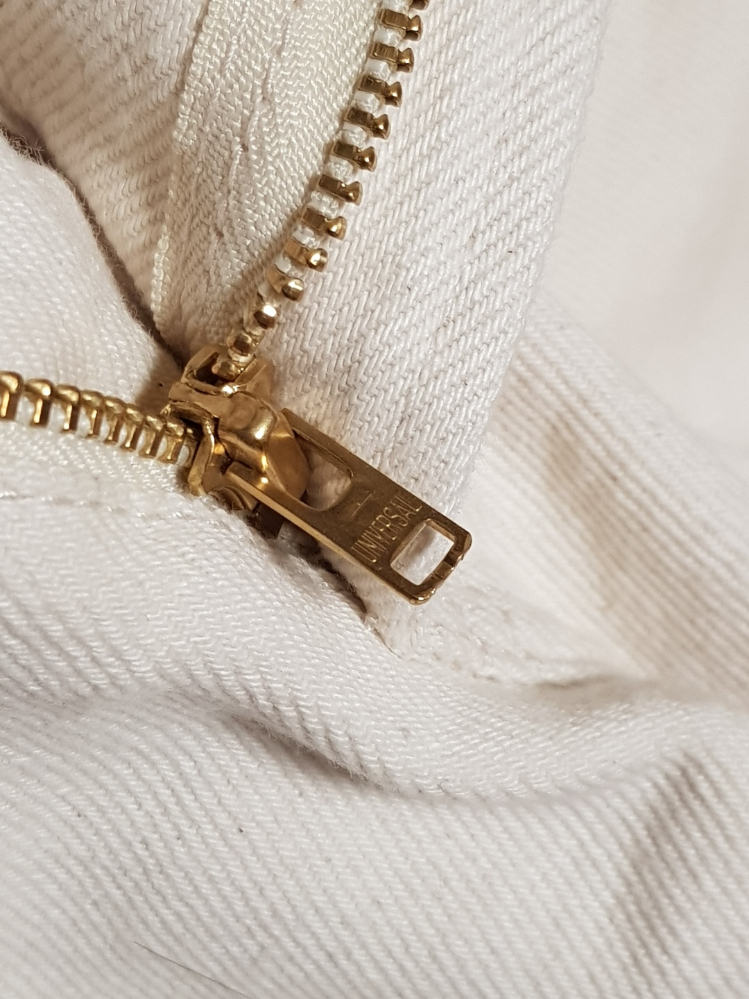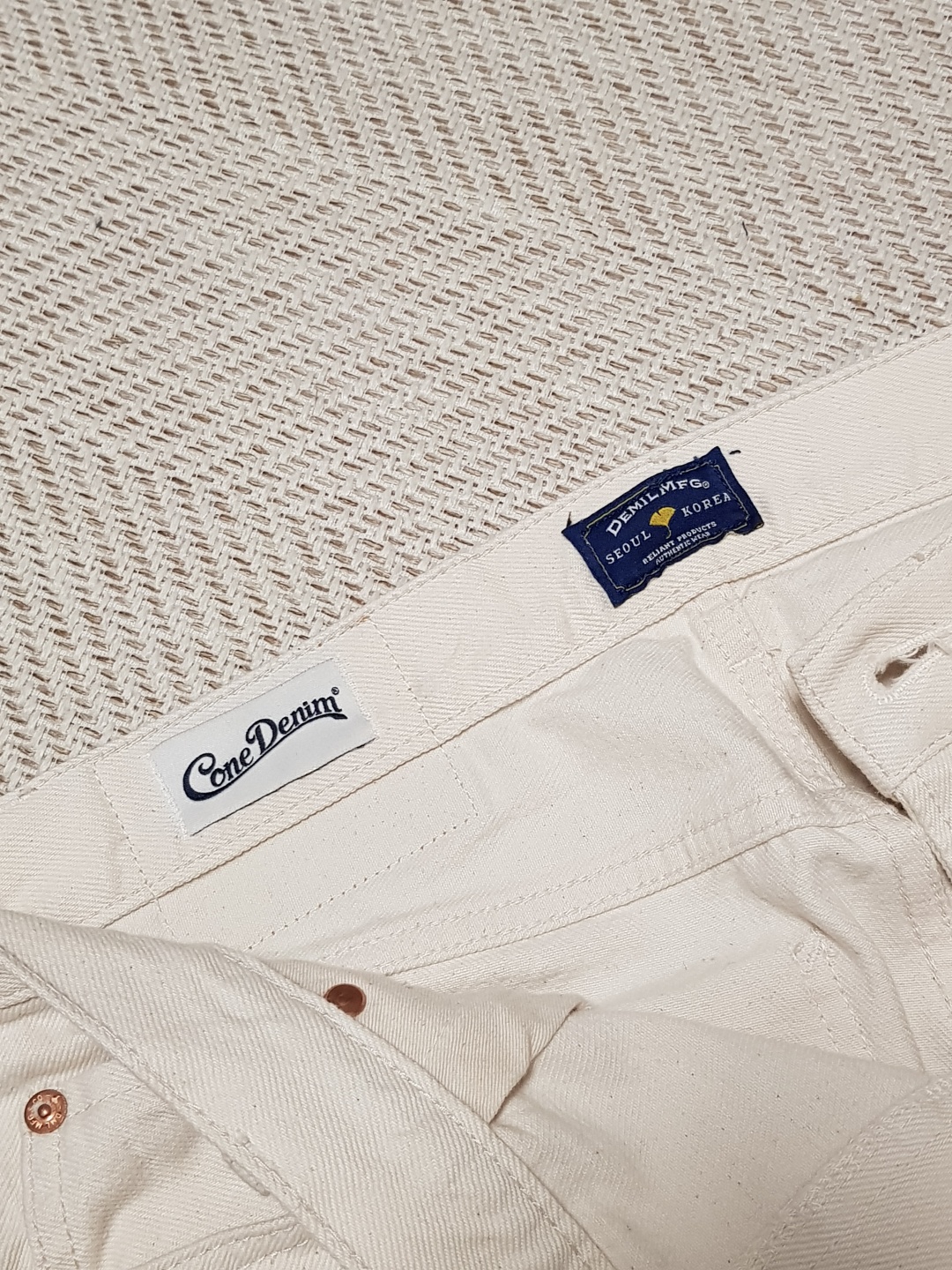 하지만 60년대의 슬림함은 현재의 슬림함과 기준이 많이 달랐나 봅니다. 개인적인 의견이지만 '밑위가 살짝 긴 편의 결코 슬림하지 않은 레귤러 스트레이트 핏' 바지입니다. 아무래도 과거의 바지라면 현재보다 밑위도 길고 실루엣이 더 넉넉한 편이었을 겁니다. 사실 그래서 더 마음에 들기도 하였습니다. 나도 요즘 아이들처럼 힙해질 수 있지 않을까라는 기대를 하기도 했지만 현실은 녹록치 않다는 것을 다시 한 번 느끼기도 하였습니다. 콘밀 원단, 유니버셜 지퍼, 체인스티치 등 제품의 디테일이 상당히 좋습니다. 빈티지 의류 좋아하시는 분들이라면 '오 이런 디테일이? ' 하면서 좋아할만한 포인트들을 두루두루 갖춘 느낌입니다. 확실히 의류를 잘아는 사장님이 제작하다보니 퀄리티가 다름을 느낍니다. 이러한 정보는 제가 어설프게 다뤘다가는 제작자의 정성을 심각하게 무시하는 행위인 것 같아 아래 링크를 첨부하도록 하겠습니다. 결코 귀찮거나 양이 방대해서가 아닌점을 다시 한 번 말씀드립니다 껄껄