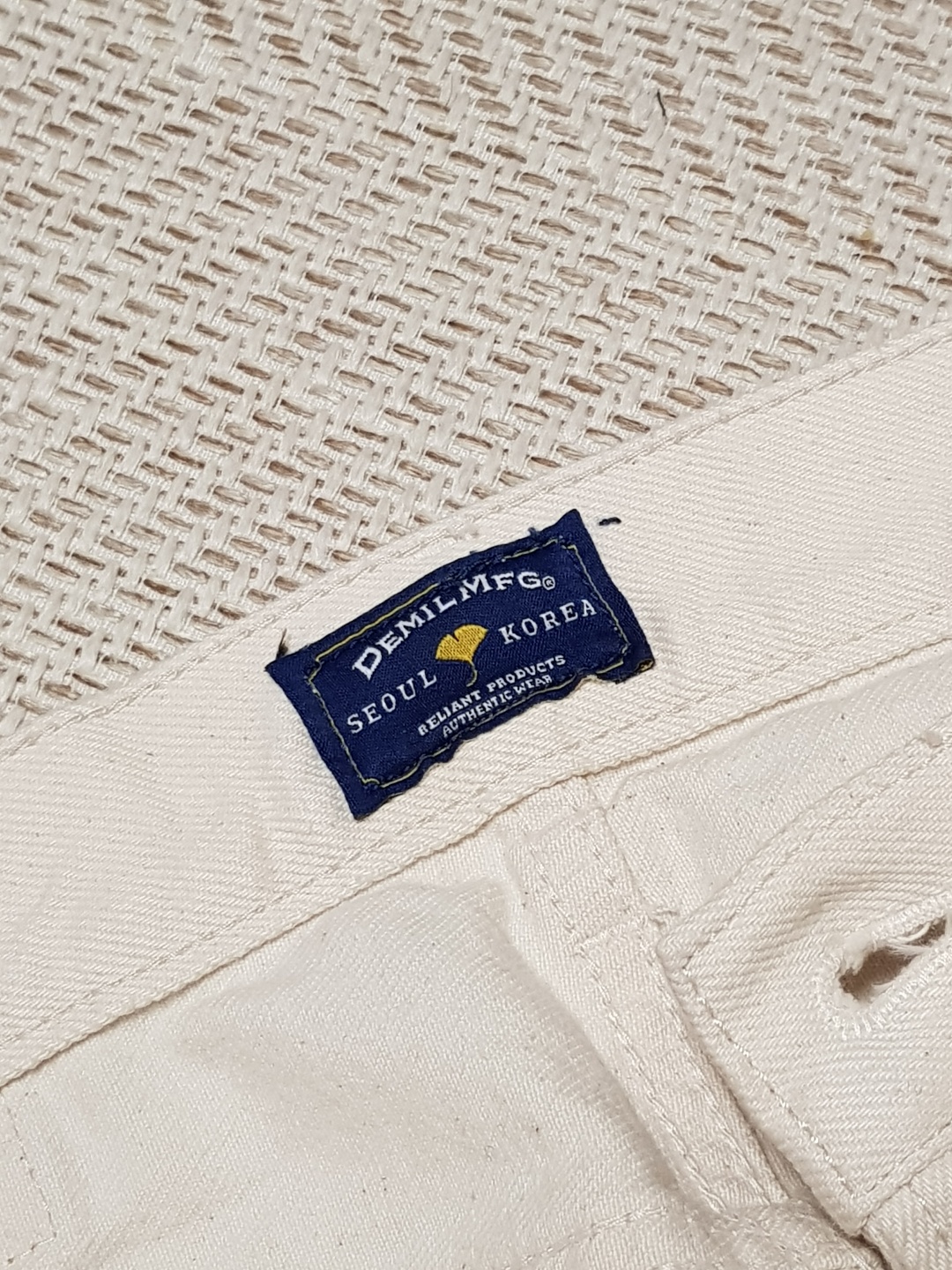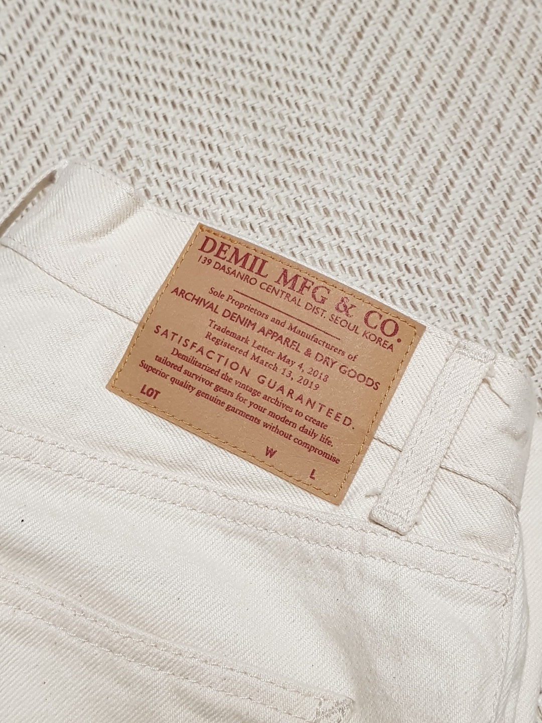 데밀의 바지 제품들은 대략 10~30만 원 정도의 가격대를 형성하고 있습니다. 가성비충인 저는 가격대가 높은 제품은 쉽게 구매하지 못한다는 특징을 가지고 있지만 1)데밀 제품을 경험해 보고 싶은 마음, 2)에크루 진이 필요하다는 점, 3)그나마 비벼볼 만한 가격대 인점을 핑계로 바지 한 벌을 구매해보았습니다. 제품명은 'LOT. 026 Hollywood Slims Off White' 입니다. 가격 99,000원 저는 네이버페이 등 기타 제휴 포인트를 이용해 저렴하게 구매하였습니다. 평소 허리 사이즈 30인치, 해당 바지도 30사이즈를 구매하였고 착용하다 보니 아주 살짝 루즈하게 잘 맞습니다.
